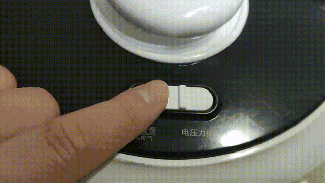 时间到了之后首先需要对压力锅进行排气,向下按压压力释放键就可以快速排气了。