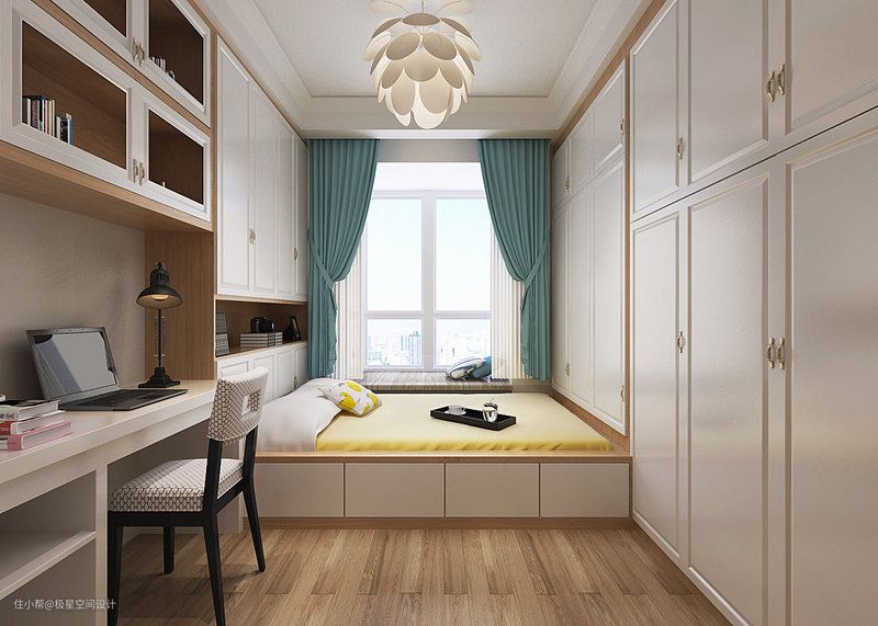 假如家里有一间卧室较为小,能够 考虑到做一个榻榻米书房,既便捷自身念书歇息,还可以作为酒店客房,便捷顾客留宿。