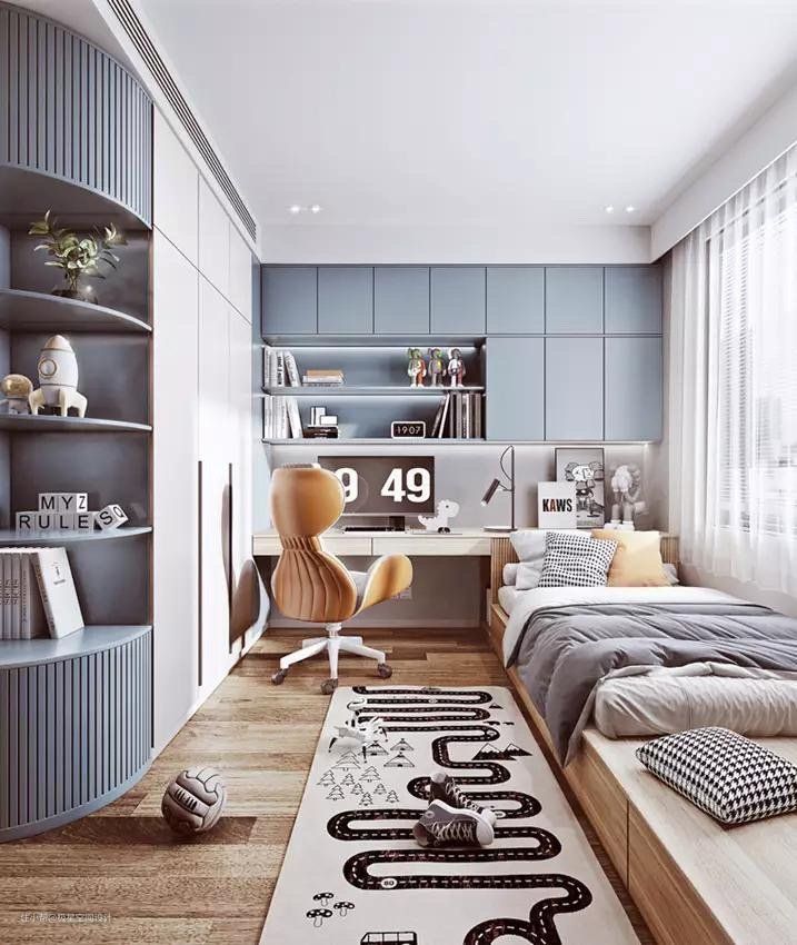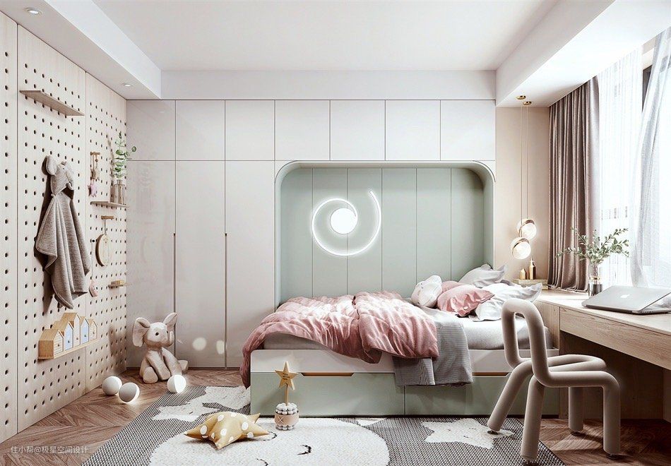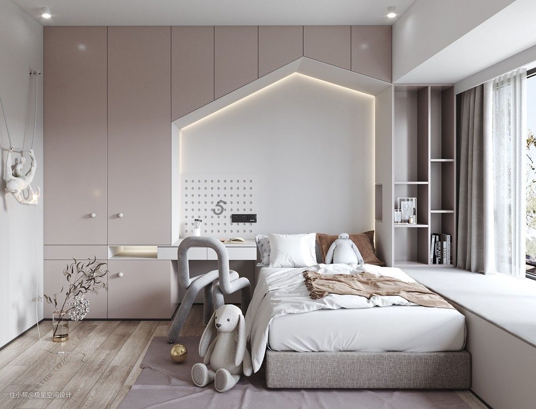 对于儿童房的榻榻米,相对来讲颜色可以做的俏皮一些,造型也可以是多种多样的,营造一种充满童真的氛围感。