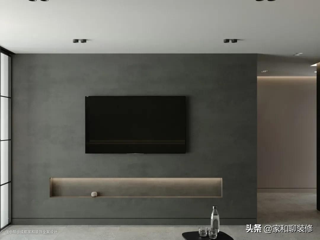 有些朋友在设计电视墙的时候会选择做整墙造型,比如用石材或木质,这时候就可以直接将电视嵌入背景墙造型中,既能减少壁挂电视的突兀感,又能让整体看起来优雅大气,有格调。