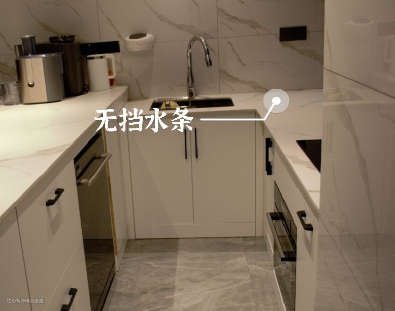 其实,厨房台面完全可不用挡水条,里面的缝隙用玻璃胶密封上就好了,效果跟装挡水条一样,甚至还比挡水条少了一条密封胶缝隙,打扫起来更方便。