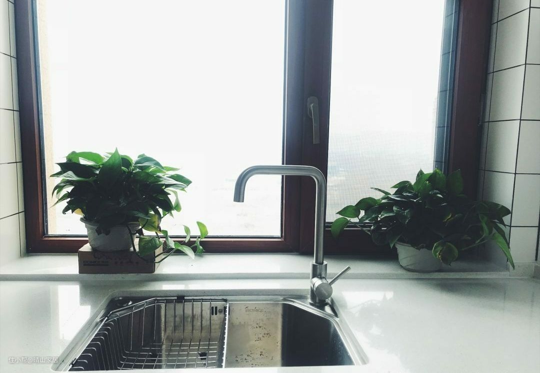 厨房的窗台一般比较窄,独立存在的话,并不好利用,可以将其与台面平齐,二者融为一体,既扩大了台面空间,也更好打扫。