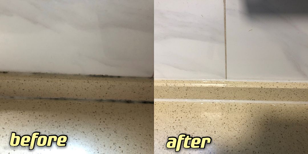 而且,它不仅能用在厨房台面,各种有密封胶的位置都能用,比如洗手盆、马桶四周、甚至洗衣机橡胶圈等,效果也都很惊艳。