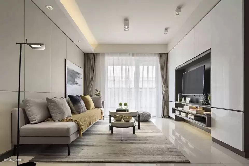特点:适用于进深不足、面宽较窄的客厅,喜欢简约感的人群。