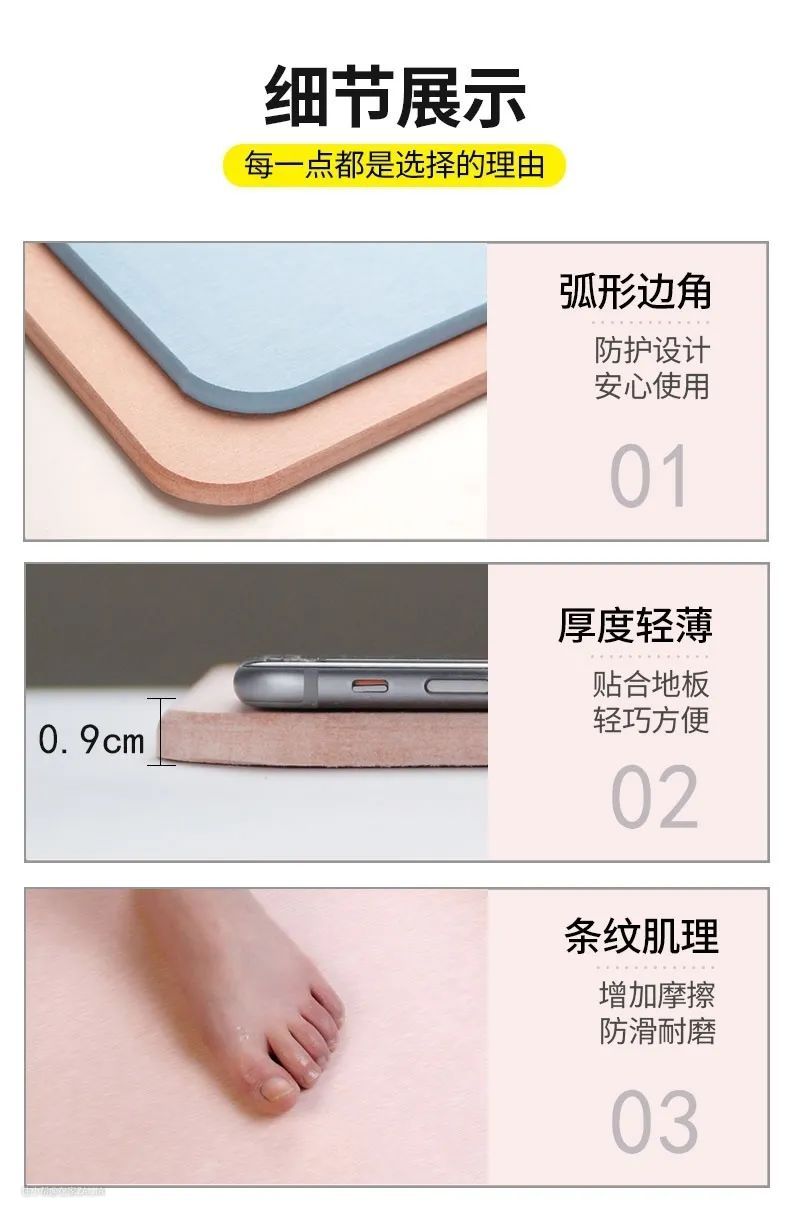 神奇的硅藻脚垫,速干防滑,让你拥有从容优雅的出浴方式