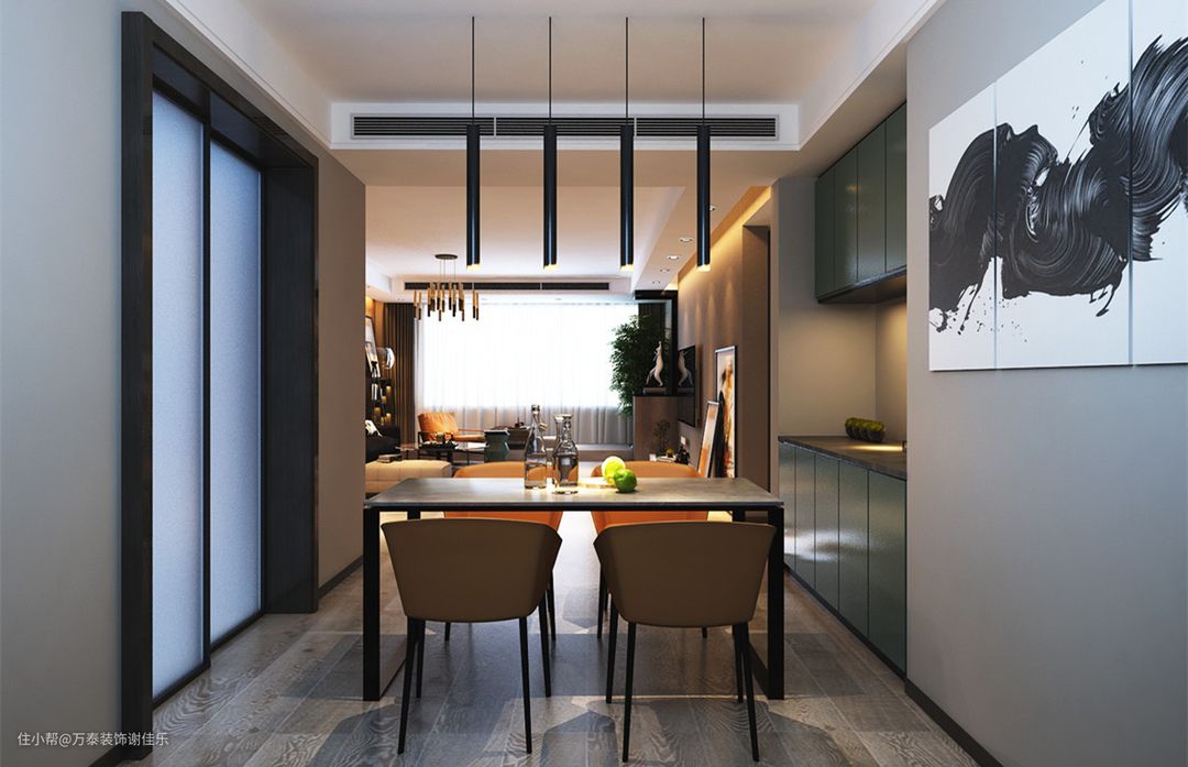 餐厅增加西厨,处理不产生油烟得烹饪过程,补充厨房功能,也能收纳爱喝饮料酒水得业主的收纳需求。