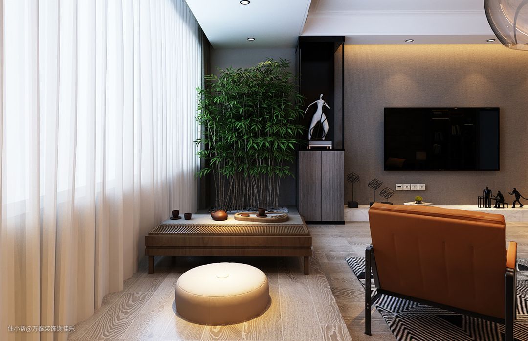 客厅做了书房与客厅结合得概念,也利用没有下水得南阳台改造打通,给爱喝茶得业主提供一个比较好得休憩平台。