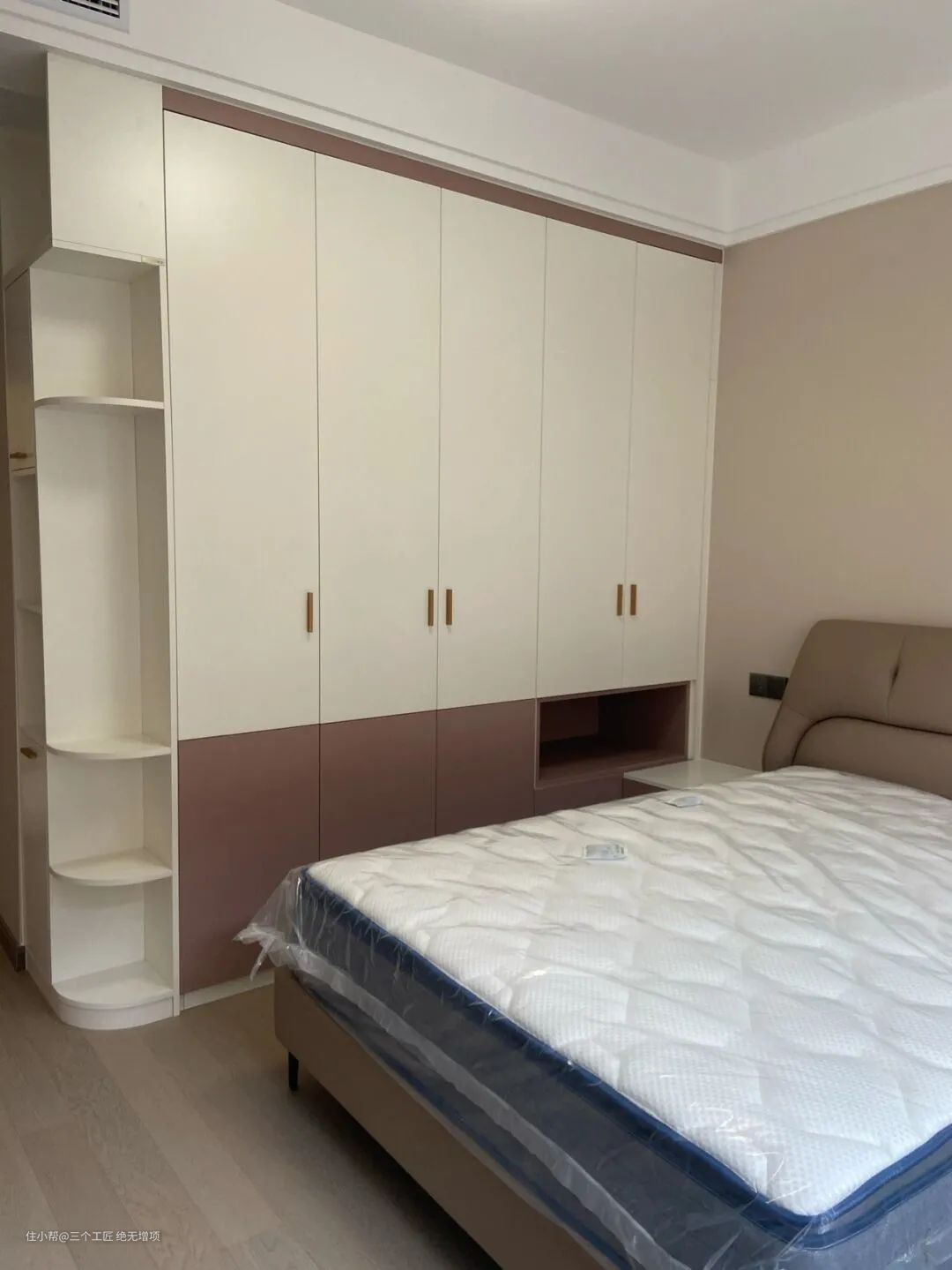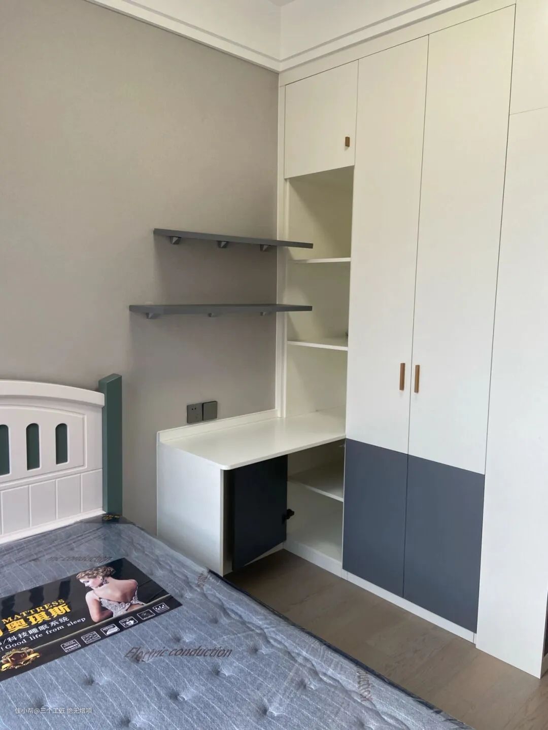 事实上,卧室的布局几乎是一样的。他们都利用凸窗的位置设计了一个非常实用的凸窗柜和书桌柜的设计。柜子都是全屋定制的,只是利用了唯一的空间,太实用了。衣柜直接上顶,不浪费半空间,可以提供更多的储物空间。