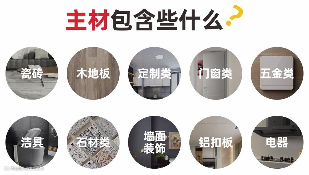 其实很好理解,主材主要是指装修中的成品材料、饰面材料以及部分功能材料。简单来说就是装修完成后外面看得见的材料,是装修完成后暴露在你视线中的产品。