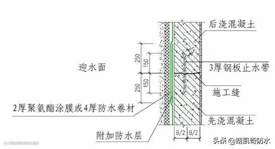 施工缝应设置两道或以上防水措施,在施工缝部位除了中埋止水带等防水措施外,迎水面还需要设置一道防水措施。