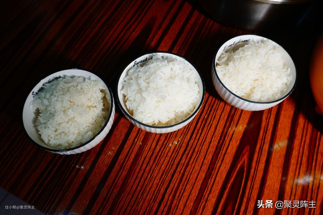 煮出来的3碗饭其实看上去没有太大的差别,如果你们看出来了差别,可能就是灯光的问题。