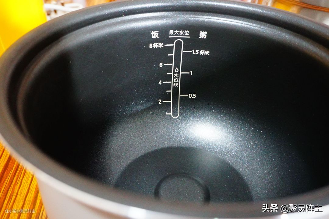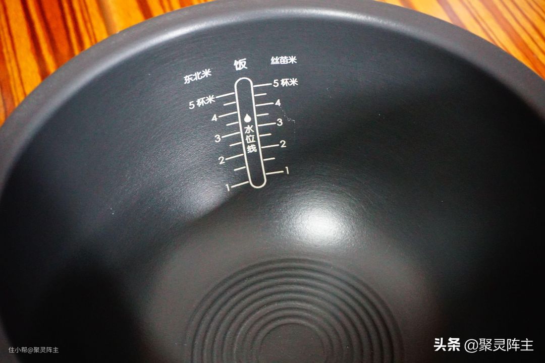 另外,大宇电压力锅的不粘内胆上也有米水用量的指示,和小米电饭煲一样的贴心。