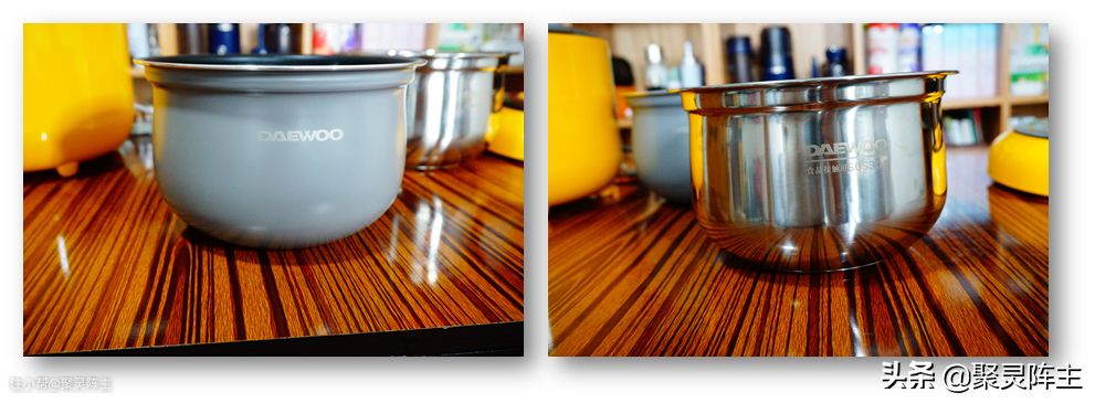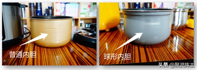 大宇的电压力锅采用的是两个球形内胆,加热会比传统形状的内胆更为均匀。另外大宇的两个内胆也不再像美的一样只是防止串味了,这两个内胆的材质也不相同,可以进行更加专业地炖煮和做饭。
