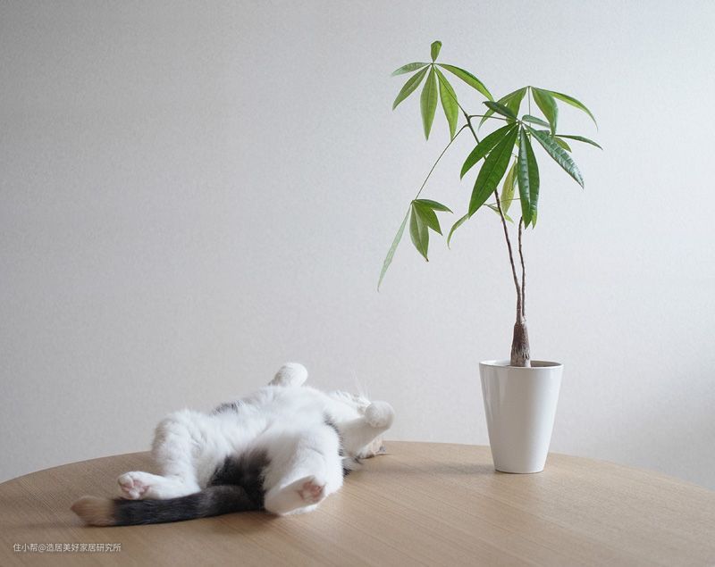 同时龟背竹叶子的纹理清爽耐看而且常年碧绿,也是很多装饰画、壁纸墙布图案的选择,简单搭配就能让人感受到浓浓的文艺范。
