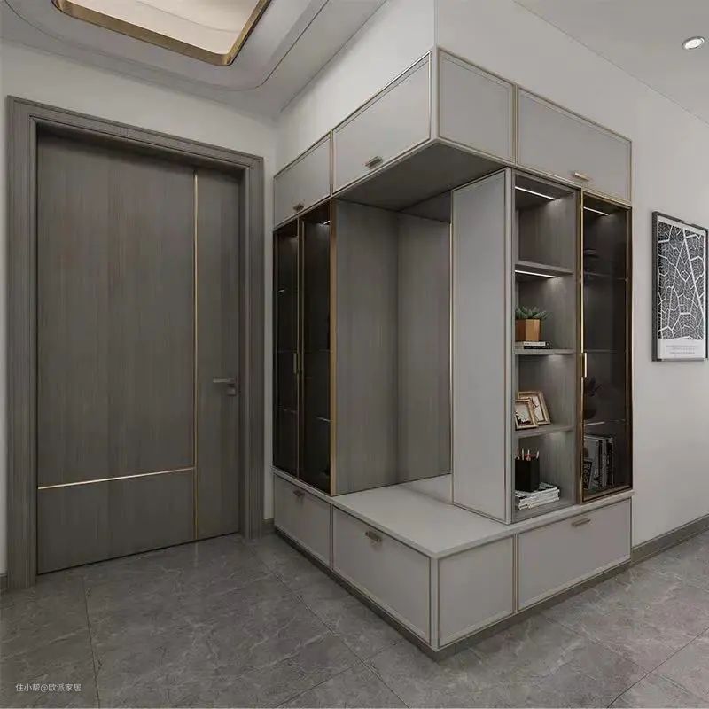 ▲进门处定制转角玄关柜,将转角空间充足利用起来,赋予玄关更多的功能性。