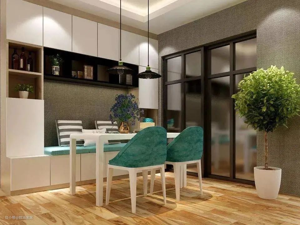 ▲玄关、餐厅或阳台都可以根据情况来定制卡座。该有的座位不会缺少,还多了一个收纳功能,实用性强,对小户型十分友好。