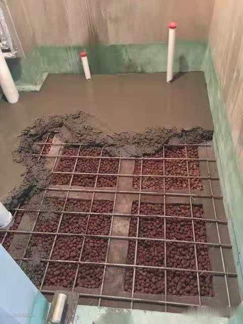 3.陶粒回填:陶粒就是陶质颗粒,通常直径在5mm至20mm之间的圆或椭圆外壳上釉坚硬强度高,内部则是封闭的蜂窝状,小孔密度均匀,质量还很轻有很好的吸水防潮,保温隔热效果关键是后期万一出现问题,维修相对来说比较方便,但前期的施工太麻烦了。倒入陶粒之前,需要先用轻质砖做隔断把沉香分为若干个400*400/500*500或者600*600的格子再分别填入高度与隔断齐平的陶粒,最后铺上1 cm直径左右的钢筋网这种回填方式所用的材料成本和施工费用加起来确实比较贵适合对生活品质有追求,且预算充足的家庭选择。