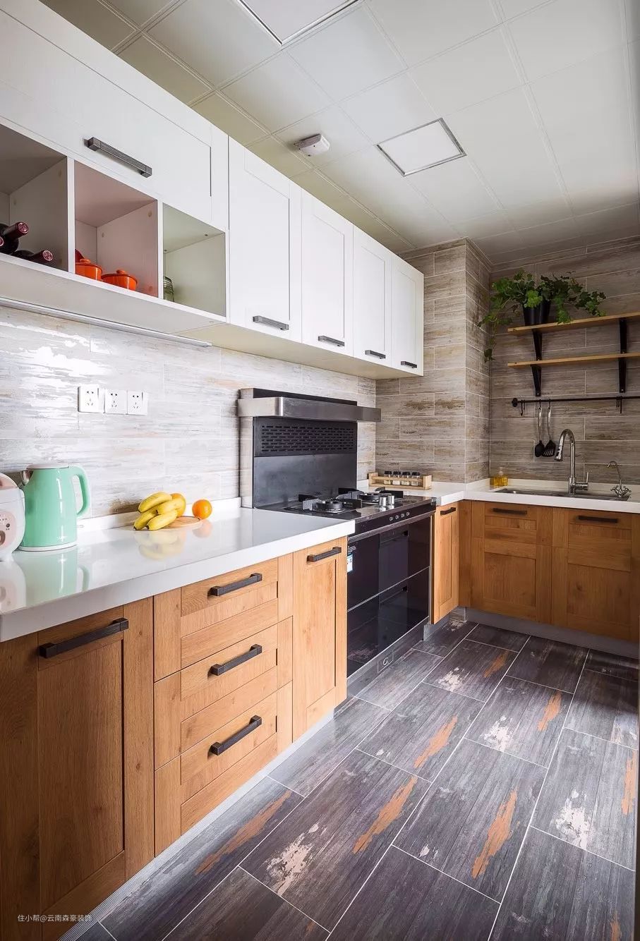 耐水石膏板+防水乳胶漆,更适合厨房使用,一般多为平面吊顶,可以让天花的存在感降低,安装灯具、照明设备更在自由。哑光的乳胶漆白色表面,可以和厨卫空间更好融合。因为完全可以不受尺寸限制,可以根据厨房的结构做一些暗藏灯槽、跌级。需要注意的是,在管道检修口的下方对应预留检修口,检修口一般制作为隐蔽式,只有一圈自然的缝隙。刷完乳胶漆,在吊顶和瓷砖的阴角处,使用防霉硅胶密封,可以让其更美观减少潮气的侵入。缺点嘛主要就是怕顶面开裂。