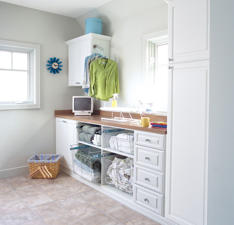 国外的洗衣机放在哪呢?一般条件好一点的人家,会专门做一个洗衣房。洗衣房里有洗衣机和干衣机,也有脏衣篓。洗衣服大一点的,还会有熨烫工具。甚至还有放衣服的收纳空间(衣柜)。