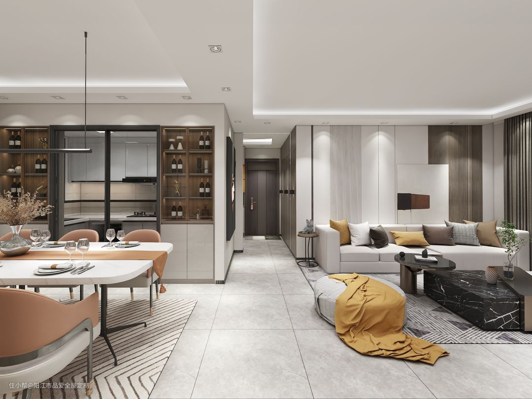 2.全屋定制的模块可以分为:橱柜,衣柜,系统柜(书柜,酒柜,鞋柜等)。橱柜的定制用可分为木质柜体结构以及石材柜体结构,衣柜可分为:掩门衣柜,趟门衣柜;系统柜就是指家里出了橱柜和衣柜的其他柜体。