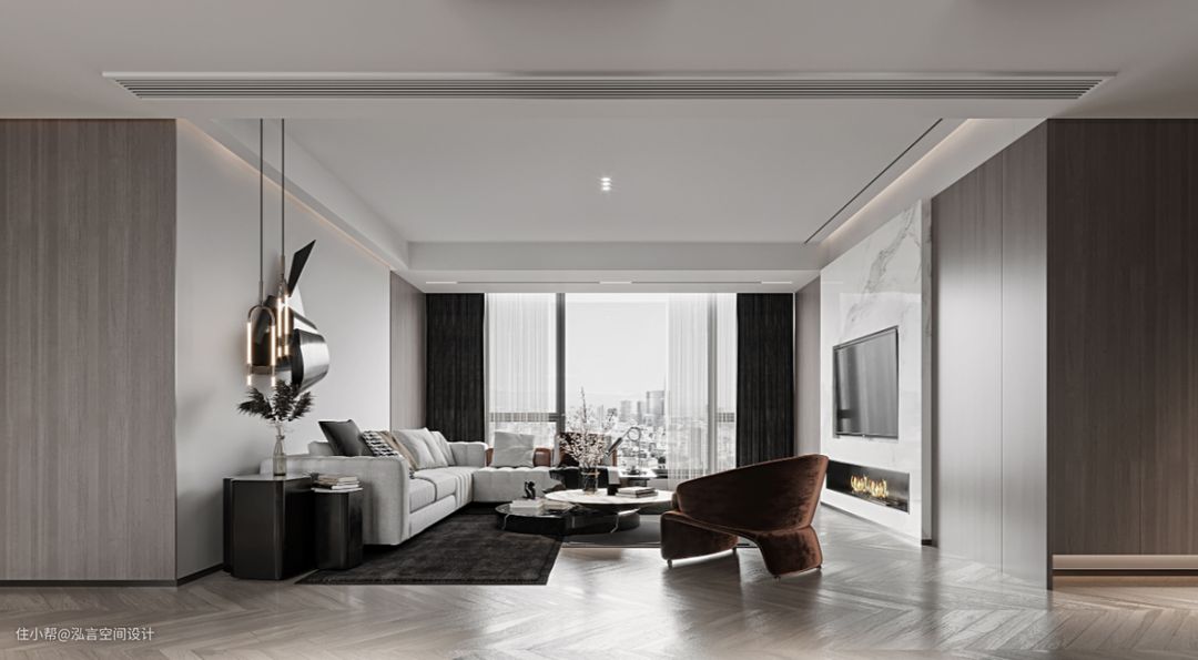正常楼层高度在2800mm左右,再由于现在中央空调、地暖等的加入,再一次压缩了层高。所以安装像吊灯这种传统的大型灯具会使得层高更加压缩且阻碍视野,但采用无主灯设计的话,就可以不用过多考虑层高的问题。