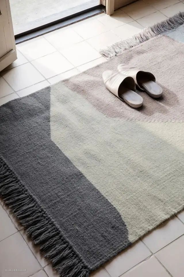 玄关是连接室内室外的必经通道,也是最容易留存灰尘细菌的空间,玄关处铺设一块地毯雨天防水,晴天防尘。不需要太贵材质太好,时间久了建议直接更换~