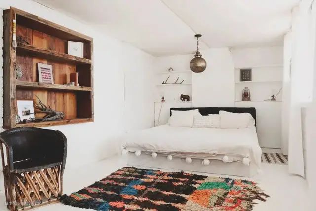 除了客厅,卧室也是地毯出现的高频场所,无论是铺设在床下区域还是两侧都要以使用舒适为主,色彩上可大胆尝试。