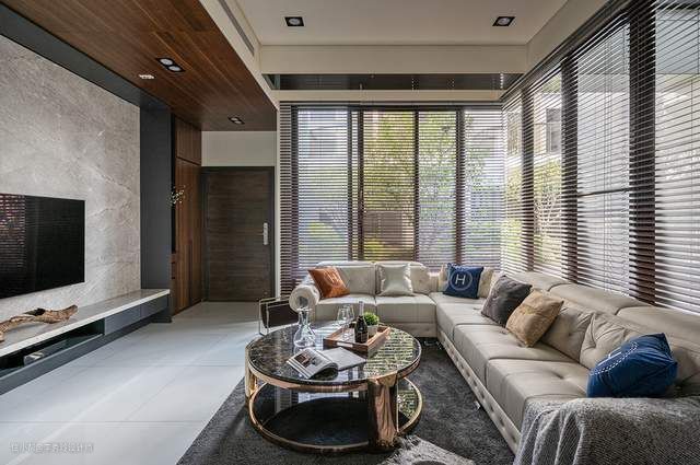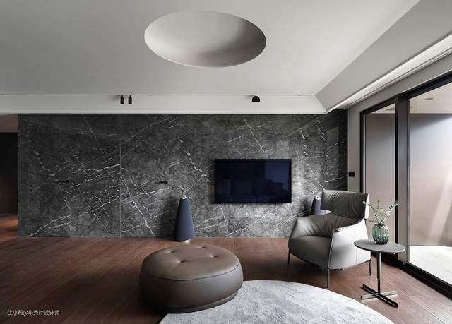若客厅的色调家具整体给人感觉太过方正或者过硬,可以用圆形地毯来柔化整个空间。