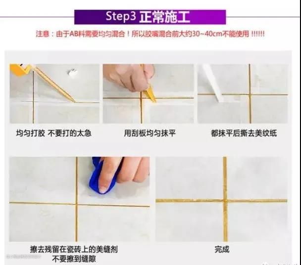第二种:便捷省事,适合大面积施工选择。勾缝剂和美缝剂的用量数据不是“死”的,要学会根据施工等因素相应变化)