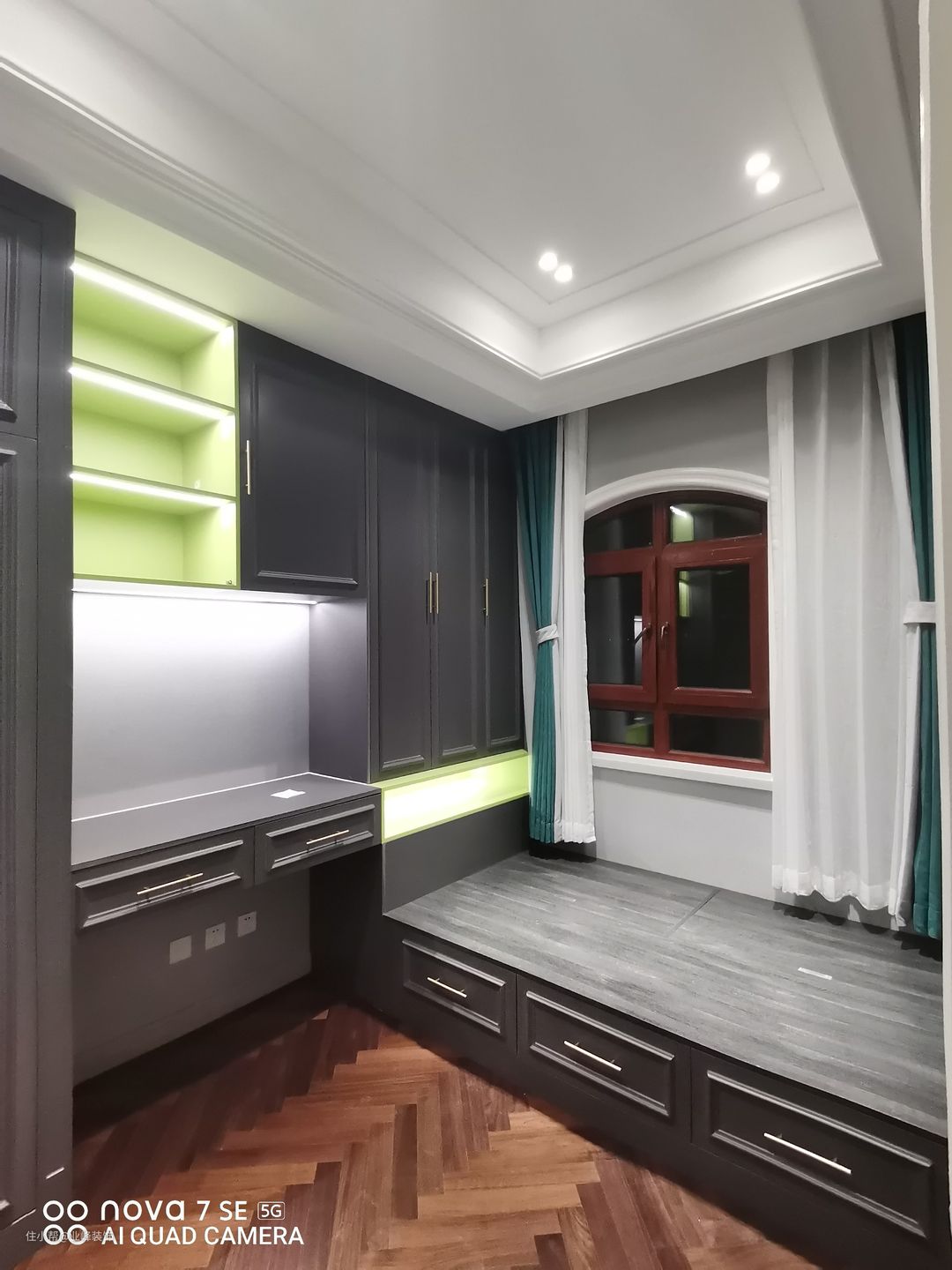 装修的时候就可以多做一些内嵌的壁柜。这样你就能少买个书架、置物架,省了放置它们的空间。