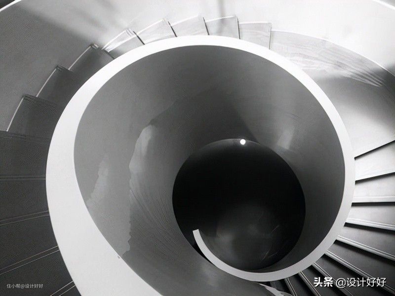 4、旋转楼梯:周圈做楼梯踏步。一般中间设有立柱,踏步围绕立柱进行布置,旋转上升。优点是占用空间小,缺点是踏步坡度比较陡。当然也有大型旋转楼梯,坡度比较缓,但是占用空间比较大。