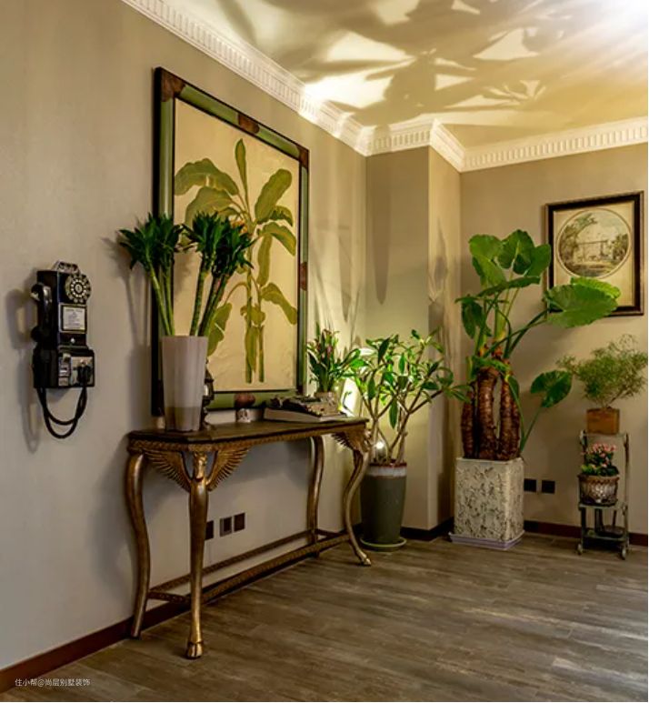 业主家位于北京市门头沟西山艺境小区,这里的房子环山而建,其外形建筑是著名纽约褐石小镇的复刻版,浪漫的褐石文化与厚重的西山京韵相交融,形成该地区最鲜明的特色。走进业主家,阳光从大面积的落地窗挥洒进客厅里,四处高低错落的绿植,俨然让你有种进入热带森林的感觉,再搭配古朴精致的家具及陈设,使房子里显得格外幽静雅致。