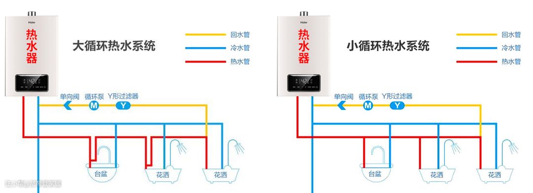 大循环的优点:热水使用等待时间短,基本就是即开即用的热水。