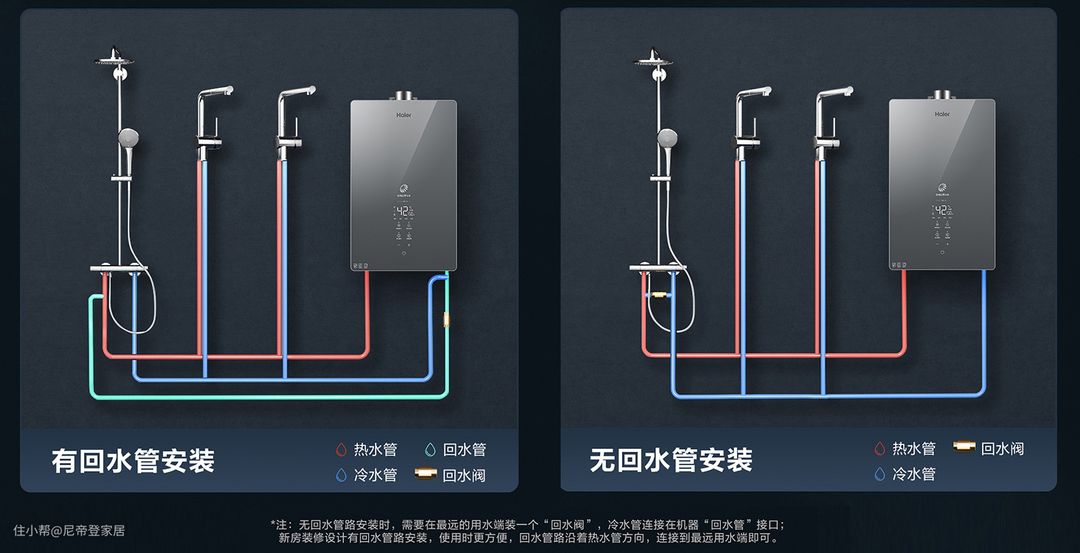 回水器因为需要外置,既不美观又占地方,于是现在出来了“零冷水”热水器,其实也就是热水器内置了回水器系统,如果是新房装修,可以考虑直接用“零冷水”热水器来解决即开即有热水,没有必要再外置一个回水器。