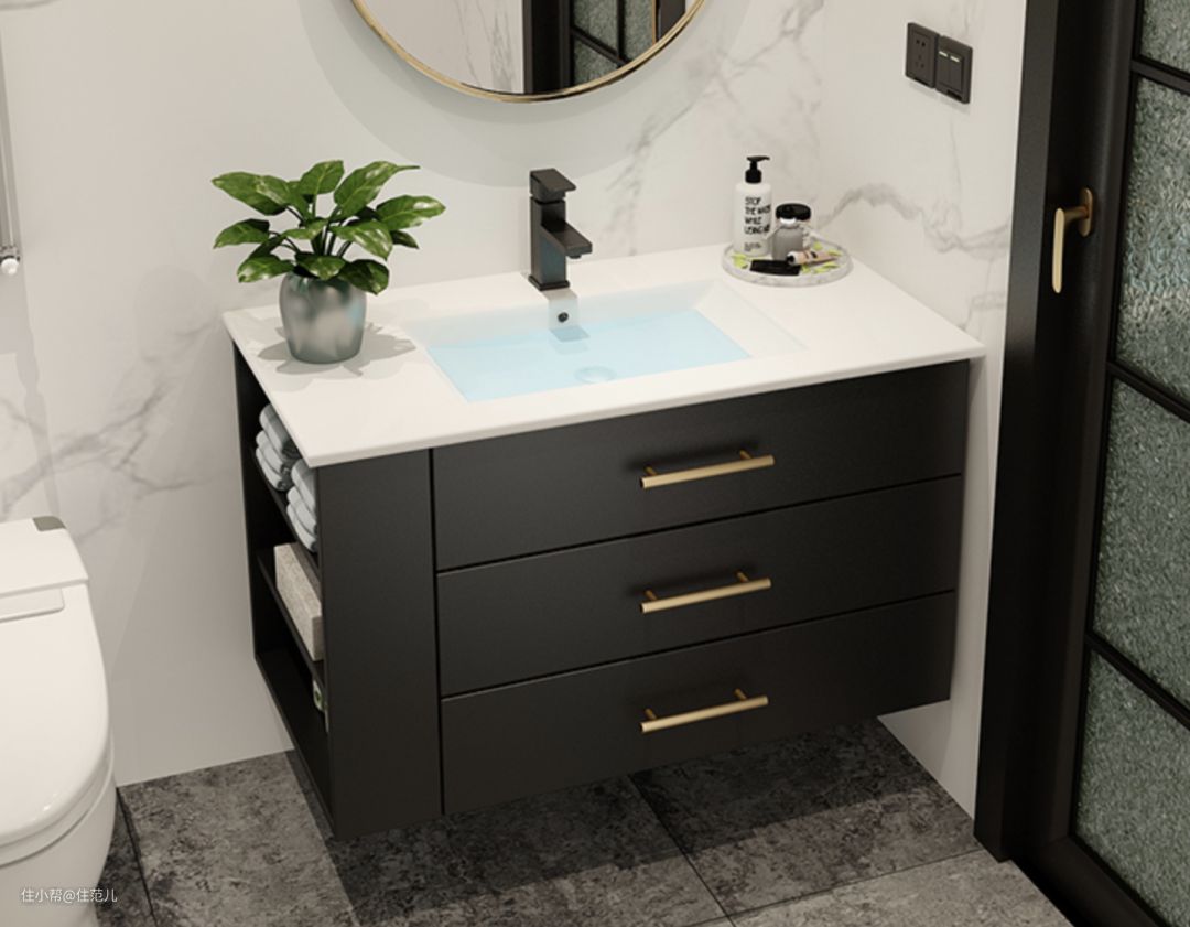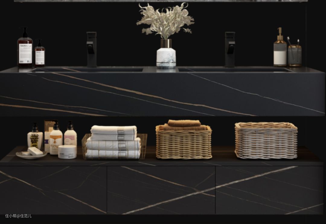 选黑色浴室柜,造型应该大于装饰,忽略那些不灵不灵的五金,本身的结构合理、线条简约流畅,让你一见倾心、再见耐看,才值得入手。