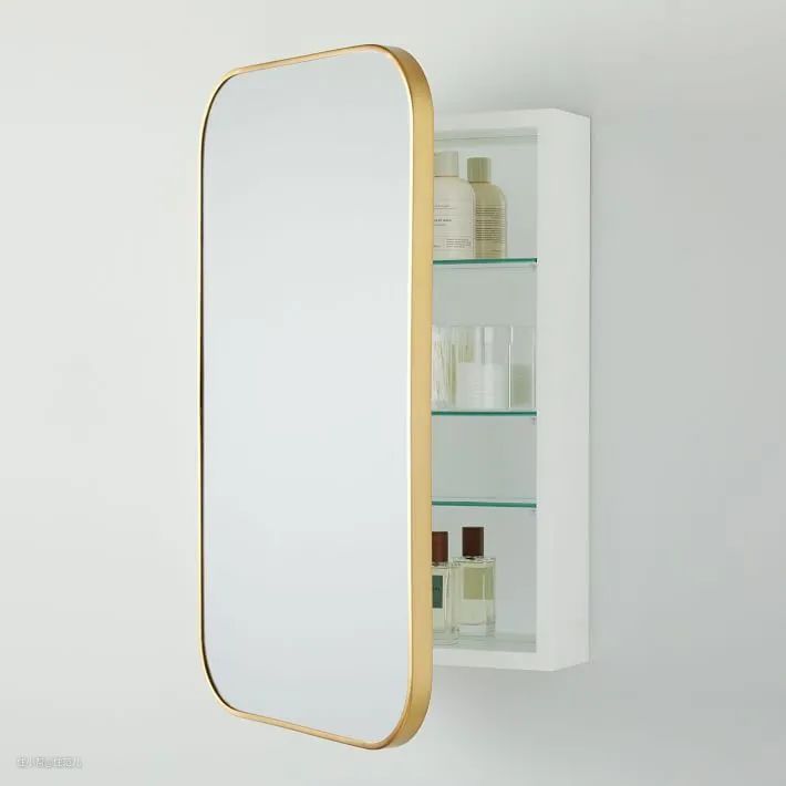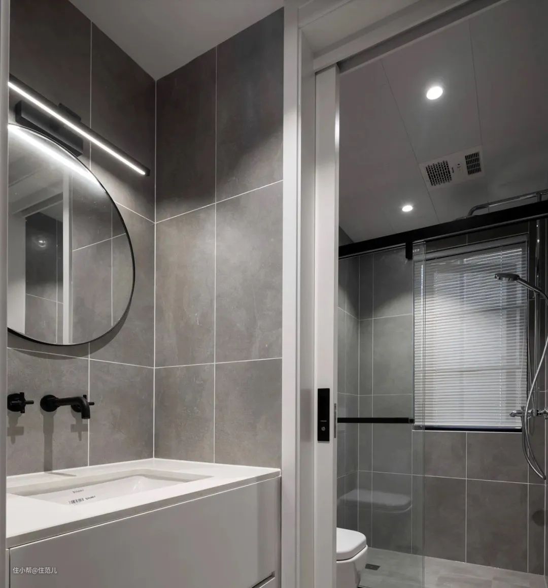 镜柜最好带边框,无柜可以考虑带边框的超薄圆镜,有种复古酷感,像郑希怡姐姐“点头杀”的魅力。
