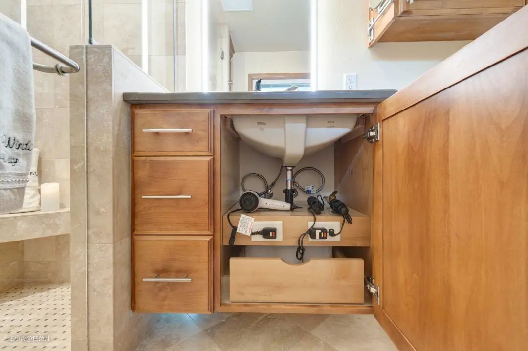 可以给电动牙刷、剃须刀充电,吹头发也不用扯长长的电线,用过的都说好!住范儿颜值革命也有内置插座的镜柜选项,广受客户好评。