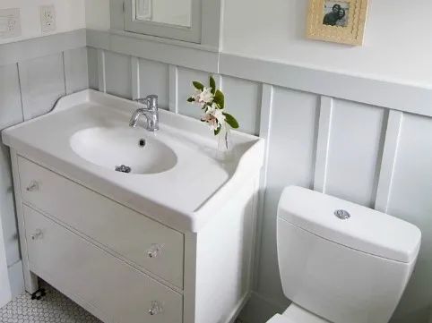 完整的现代浴室概念成型不过百年,早期的“浴室柜”起的是脸盆架功能,把盆放在一个小柜子上。