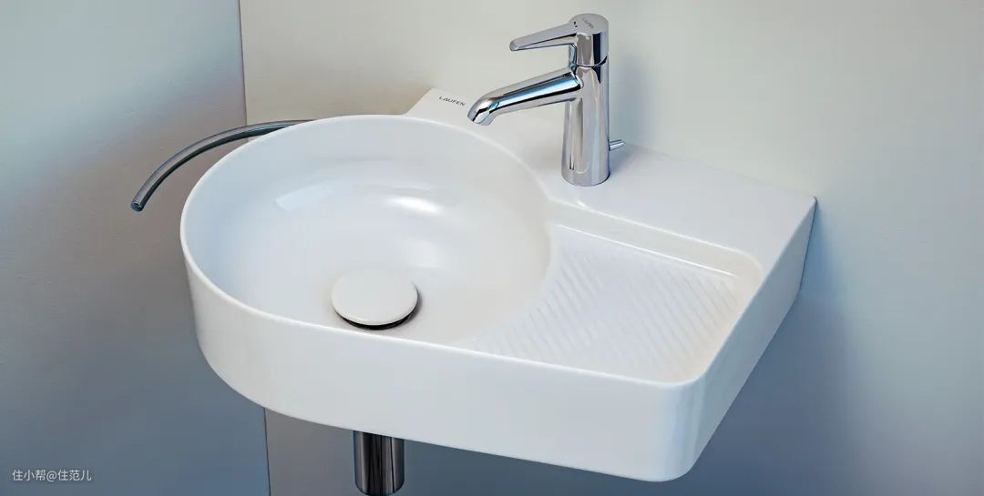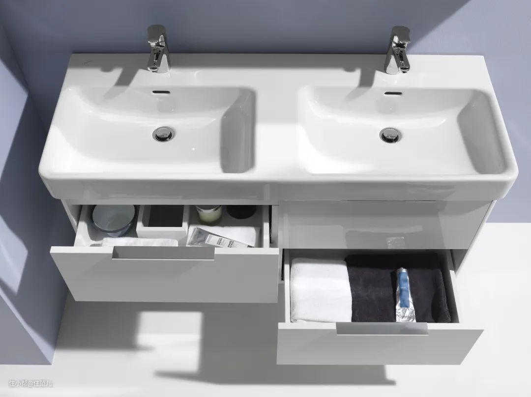 洗手池就最好别带浴室柜,一定要带也是越轻薄、越简洁越好。