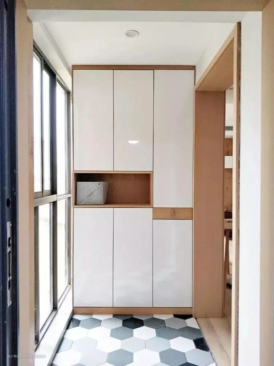 玄关是大家回家后进到的第一个空间,每一次回家后出门的鞋都是会踩进去,因而地面也是非常容易脏;而瓷砖做为耐脏耐用的地面材料,在玄关的地面贴地砖的话,就比较耐用、便于清洁。