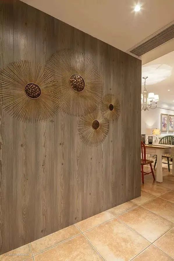 针对客厅地面是铺木地板的状况,为了更好地让玄关更便于清洁、更耐用,建议单独出来铺地砖。假如要想大客厅与玄关的地面设计风格保持一致的话,还可以选择在玄关铺木纹地砖。