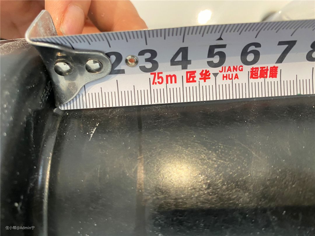 一个进水的一个排水的管子上面就有两个标记点了,用卷尺测量下这两点的距离记下。