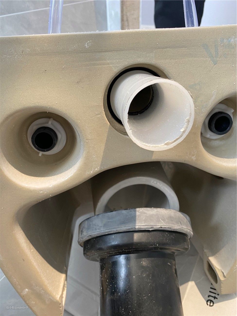 前期准备工作做完之后下面开始正式安装水箱、连接水管。要确定好马桶的安装位置,留出智能马桶盖的电源,上水(第一次我成功的把智能马桶盖的上水忘记了,又二次返工的)