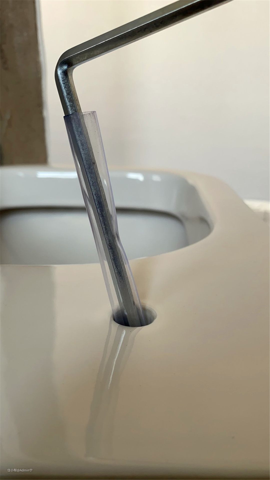 下面的排水管也是一样的,塞进去做标记后拿出来。