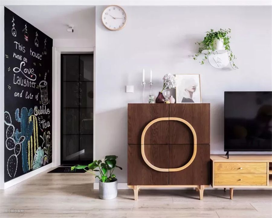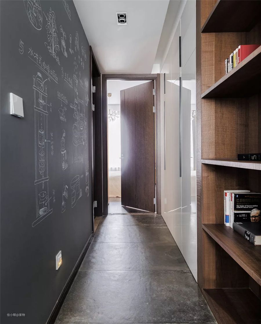 最后,家里的狭窄走廊也完全可以在墙上装黑板墙,当作一个备忘区,或者家里孩子的涂鸦区,都非常合适。