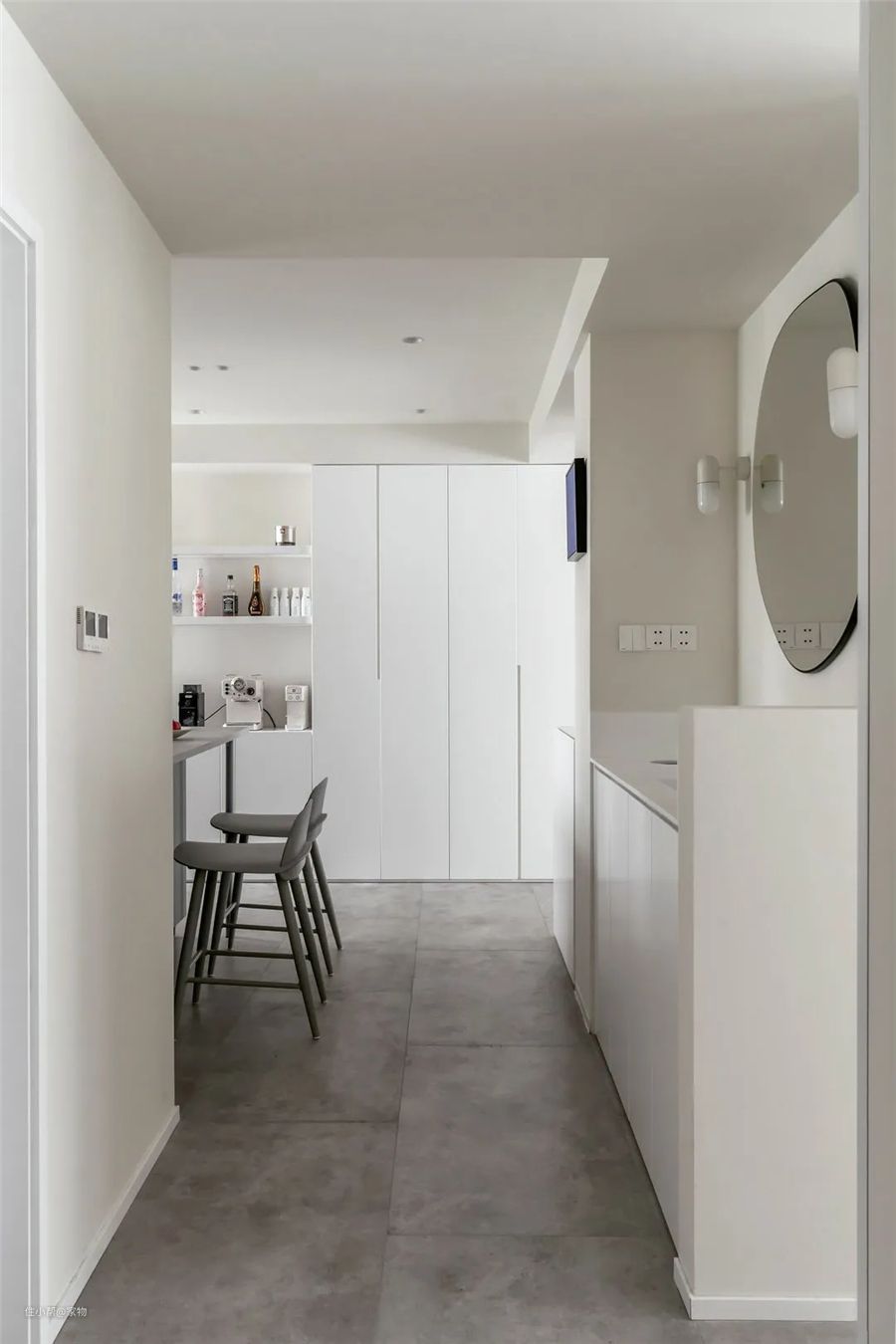 很多一进家门的玄关走廊,其实宽度并不小,但却常常会被人浪费,其实,这种走廊区域完全可以做成通顶的柜子,既保留那种一体统一的视觉观感,又能给屋内增添收纳区。