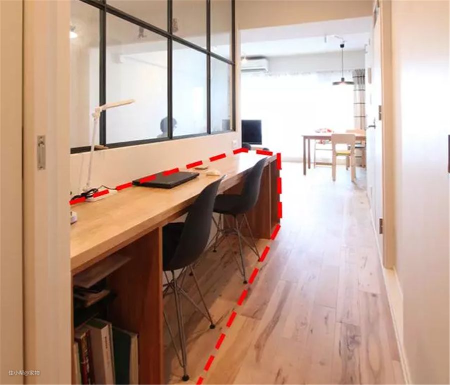 如果是非常非常狭窄的走廊,甚至基本上仅能容一人通过的话,那么就放弃功能区的想法吧!但这并不代表我们放弃了这个空间。
