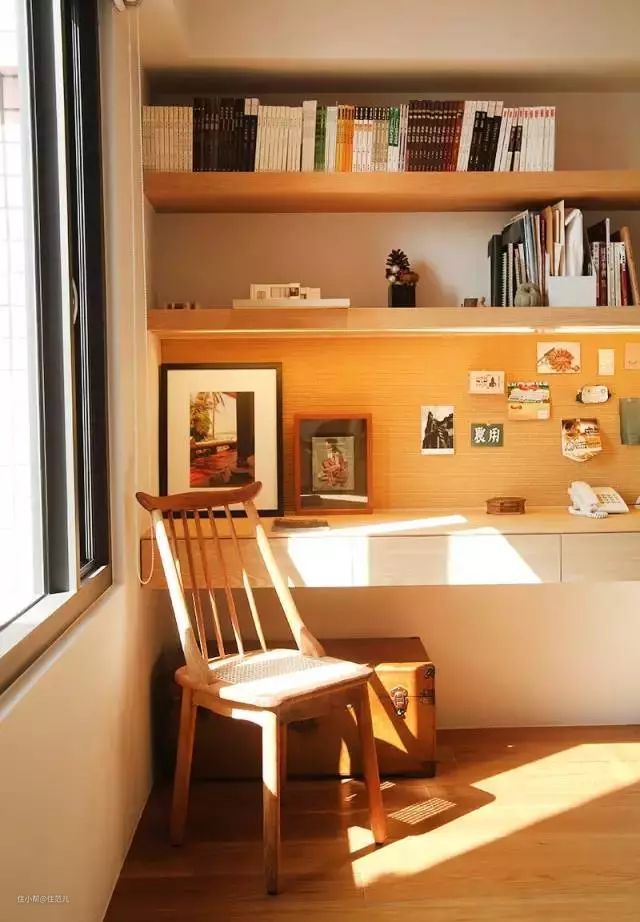 不少家庭的的书房都采用了这种上板下桌的布局,视觉看上去整齐和谐,关键是还省空间。