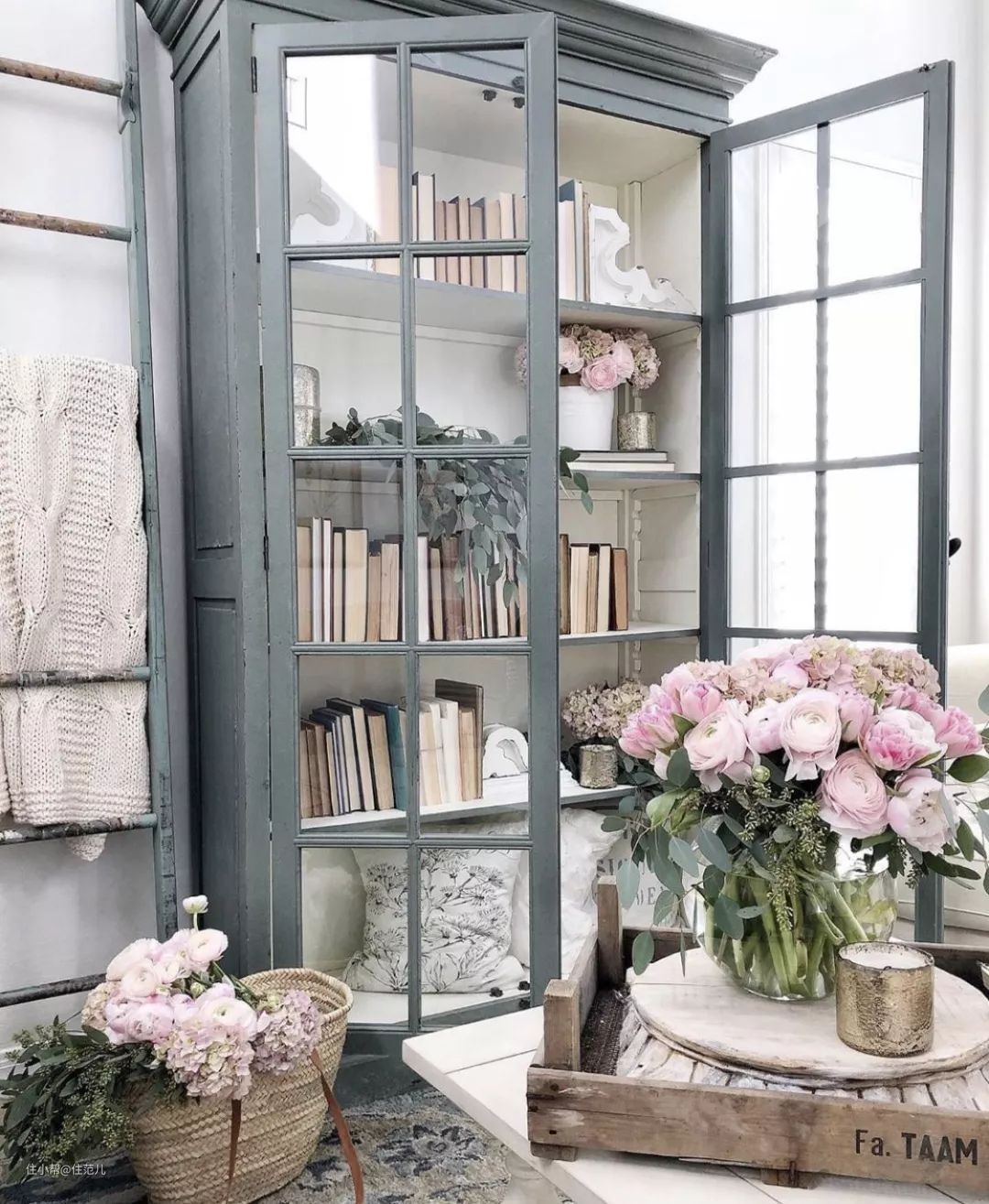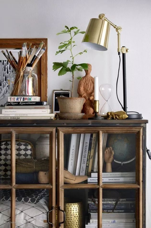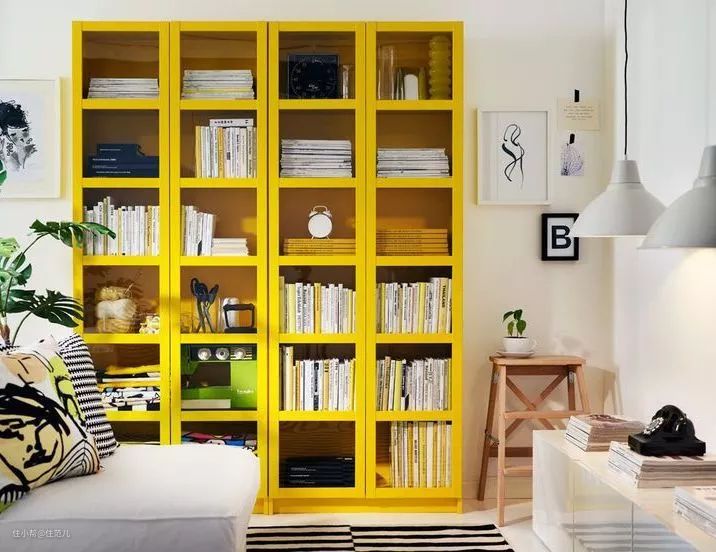 最推荐的还是这种高颜值的小书柜,既可以存书,也是很吸睛的装饰柜。