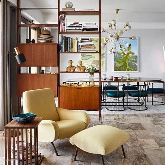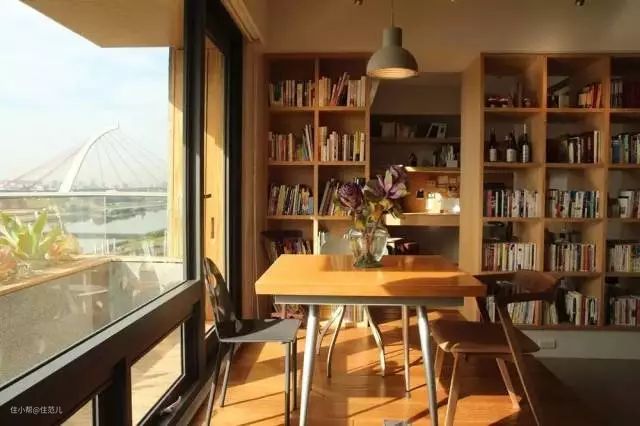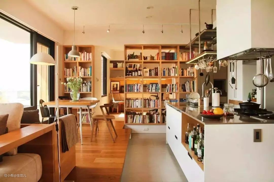 书架还可以用来分隔空间,像台湾知名作家叶怡兰的家,就用大书架将餐厅分隔开来,既保证了空间的通透,又为书房创造了一个半封闭的独立空间。